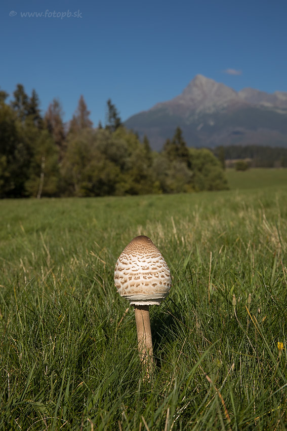 Väčšiu bedľu, ktorá by už bola otvorená som nenašiel, lebo v okolí boli aj miestni hubári, ale som rád, že rástli aj na miestach kde sa dá do záberu dostať Kriváň.