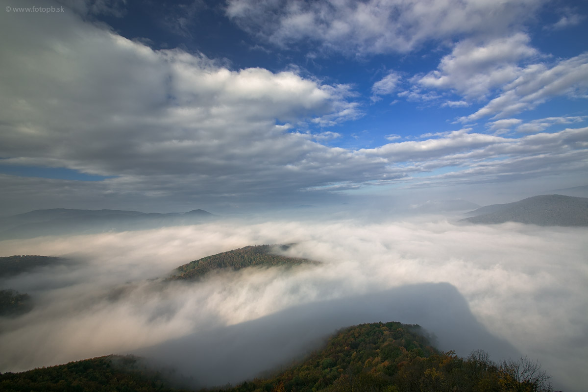 Po jesennom svitaní vrhá Sivec na okolitú krajinu tieň, ktorý kopíruje jeho charakteristický profil.