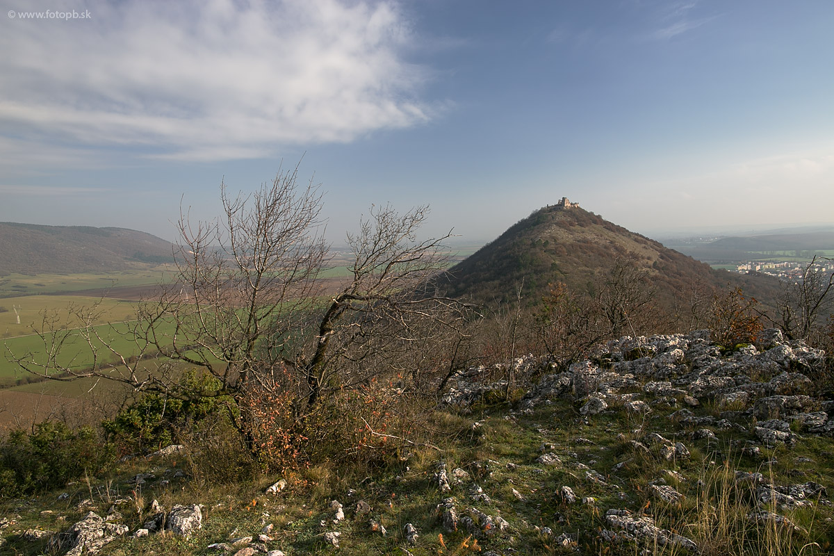 Dosť ťažko sa mi hľadalo miesto odkiaľ fotiť hrad z náprotivného kopca. Ten je z prevažnej časti zarastený kríkmi, ktoré kompozícii veľmi nepomôžu. Naposledy som fotil z týchto miest pred dvoma rokmi pri inverzii a to bolo jednoduchšie, lebo veľa rušivých prvkov zmizlo v hmle.