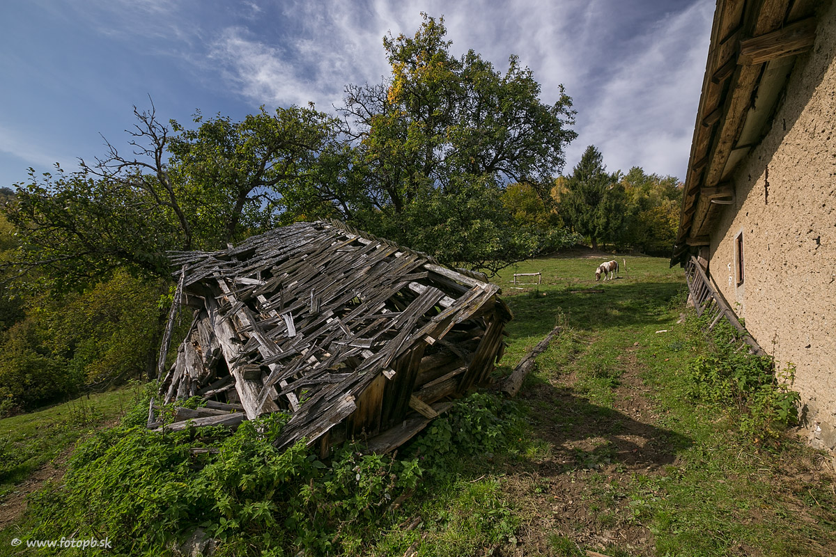 Vždy keď idem fotografovať na Muránsku Zdychavu pozriem sa ako postupne chátra táto malá hospodárska budova a snažím sa aspoň vo svojej fantázii vžiť sa do obdobia, keď ju niektorý z šikovných miestnych majstrov postavil a ako potom roky slúžila svôjmu účelu. V máji roku 2013 vyzerala takto http://www.fotopb.sk/foto/4900 .