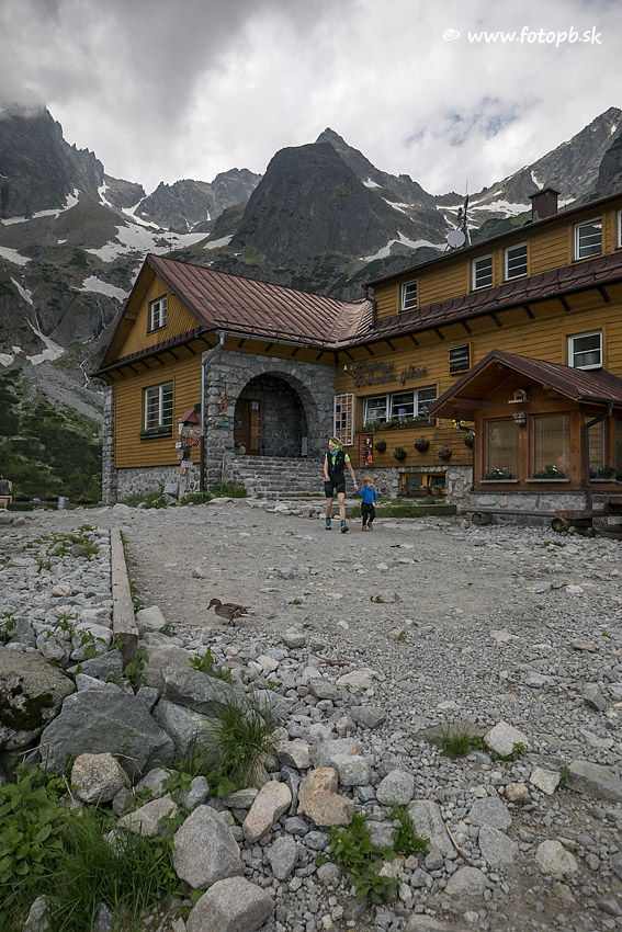 Kačica si hľadá pri chate omrvinky po turistoch a nie je plachá.