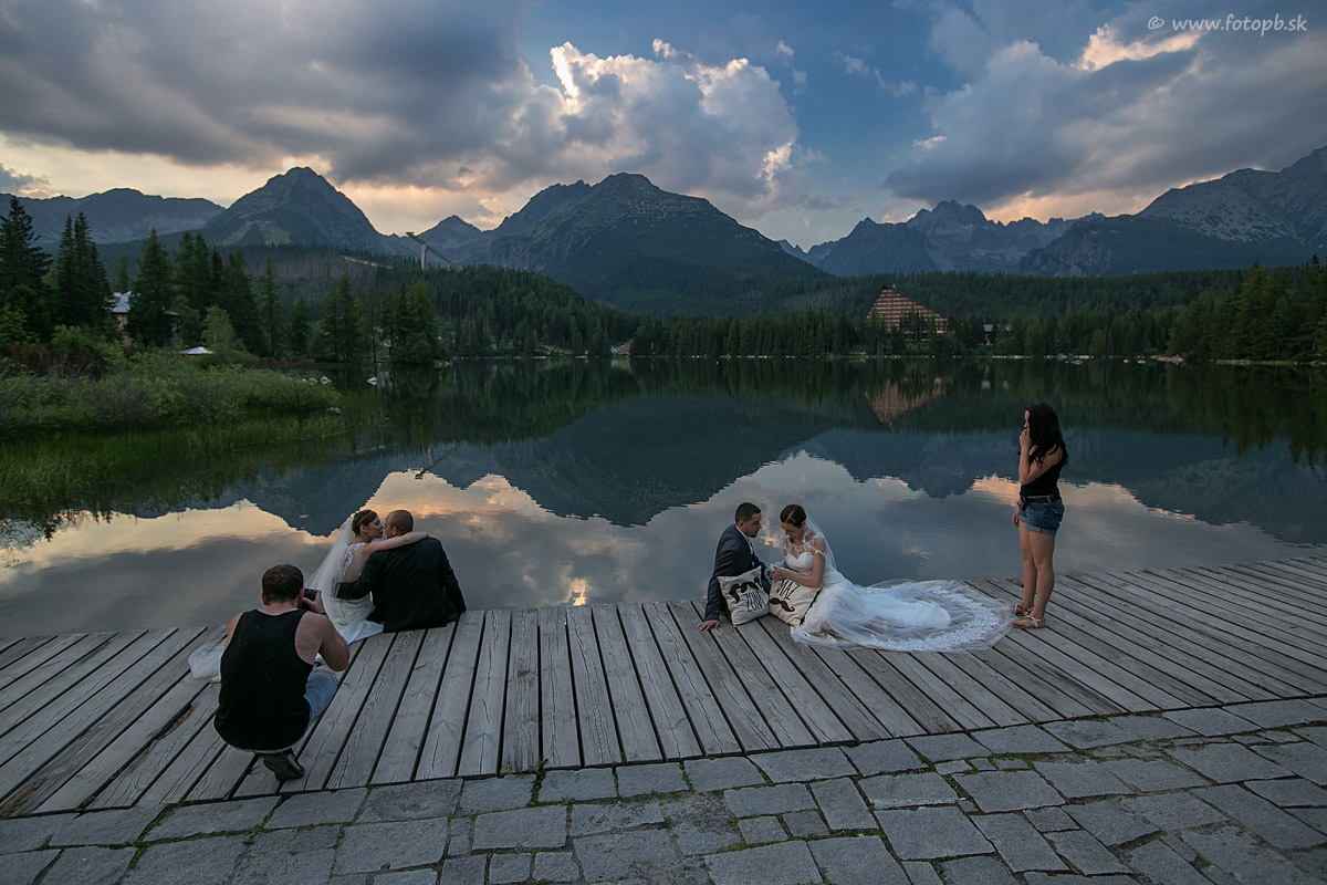 Poľský fotograf s asistentkou pri fotení predsvadobných fotografií.