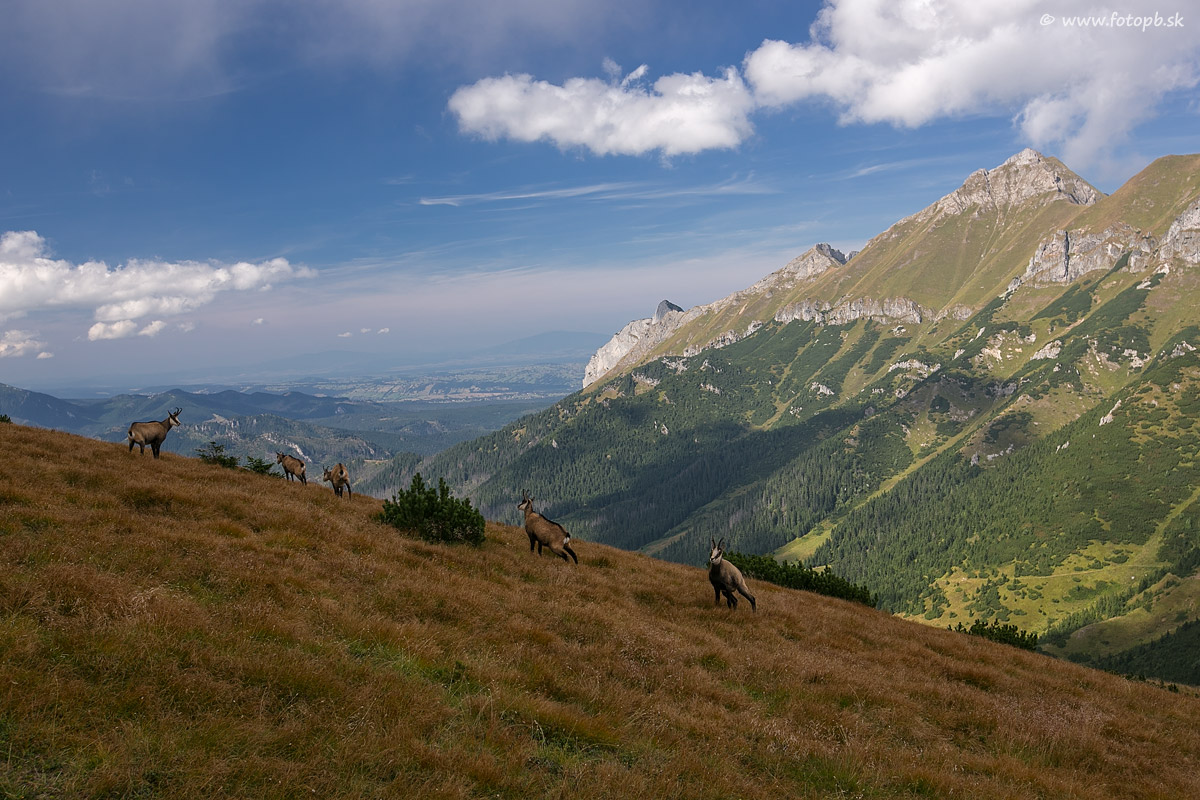 Nad Kopským sedlom je plno kamzíkov. Nie sú ani veľmi plaché, len si pomalou chôdzou udržiavali odstup od fotografa. Mal som iba širokoúhly objektív a navyše svetlo nebolo zďaleka ideálne, lebo slnko nie a nie zasvietiť tam kde bolo potrebné.