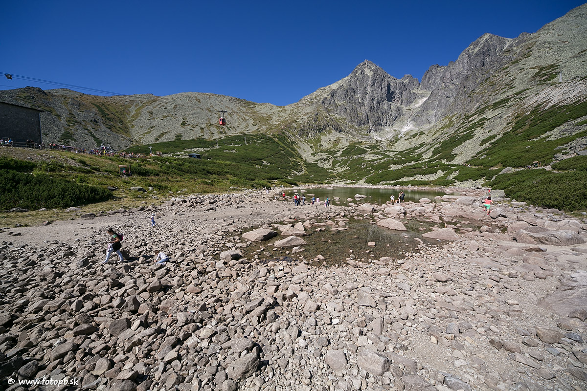 Dalo mi riadne zabrať vyjsť pešo z Tatranskej Lomnice okľukou cez Malú Svišťovku, ale počasie stálo za to a ešte som si tak aj ušetril na sedačku do Lomnického sedla, kde som bol naposledy ako študent asi tak pred 30 rokmi. Turistický chodník priamo smerom dole zo Skalnatého plesa po medzistanicu Štart nie je nič moc a v suchom počasí je tam ísť bez palice riadny adrenalín. Samé drobné kamienky a prašná hlina robili turistom problémy. Našťastie som mal statívovú jednonohu, ktorá je na brzdenie ako stvorená.