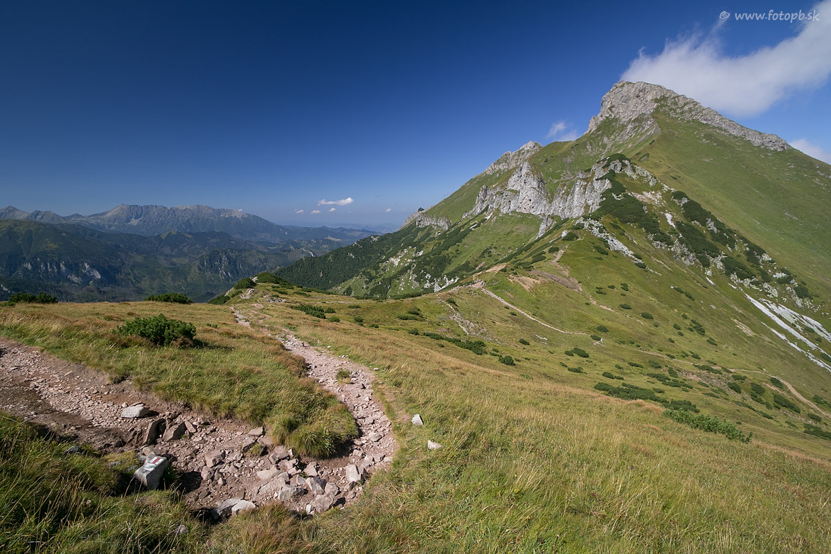 Z turistického chodníka k Vyšnému Kopskému sedlu.