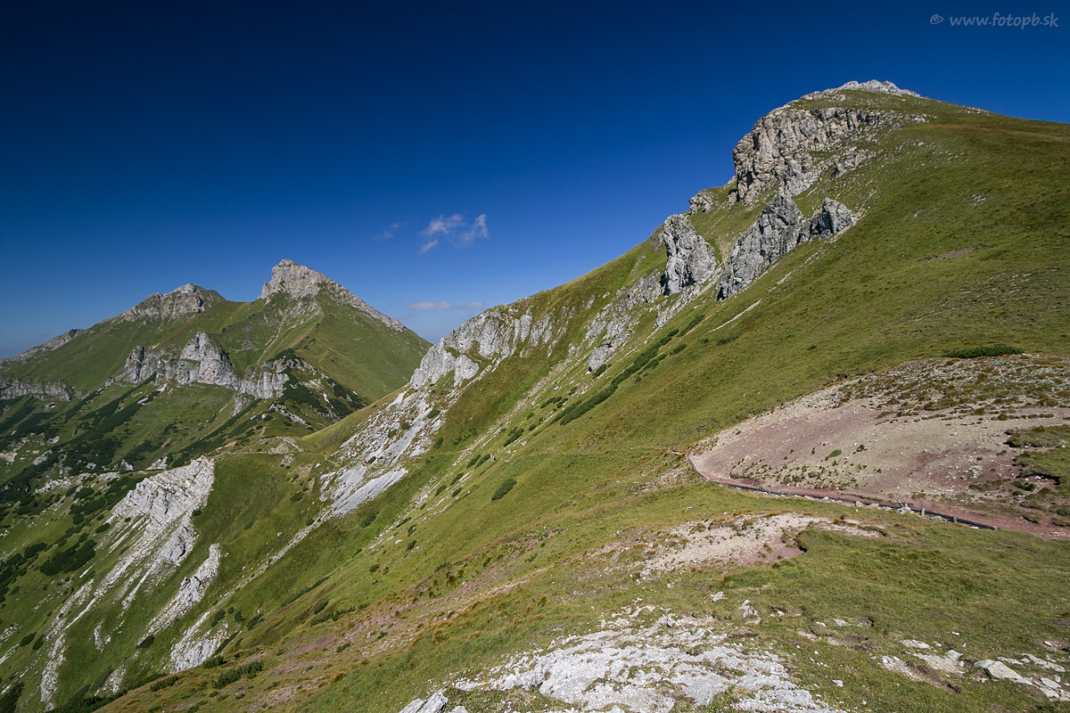 Pohľad na turistický chodník zo Širokého sedla na Vyšné Kopské sedlo.