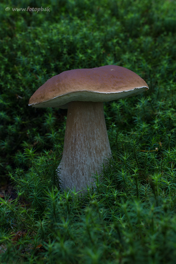 Na predošlej fotografii je vidieť väčší celok prostredia, v ktorom tento hríb smrekový rástol. Huby zásadne nearanžujem, ale fotím na ich pôvodnom mieste, iba občas odstránim z ich okolia nejaký rušivý prvok. 17.9.2025 ma prekvapilo, že vo vyšších polohách bolo dosť hríbov čistých, lebo skôr som čakal opačný trend, že budú červavieť ešte viac kým neprídu chladnejšie noci. Tento mal však nohu dosť červavú.