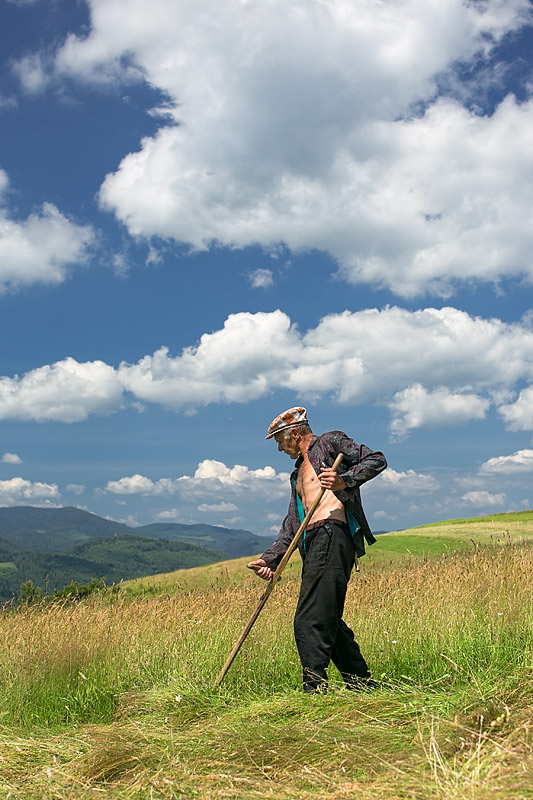 Obdivujem týchto ľudí, ktorí dokážu od rána do večera v letných horúčavách takto ručne pokosiť niekoľko hektárov lúky.