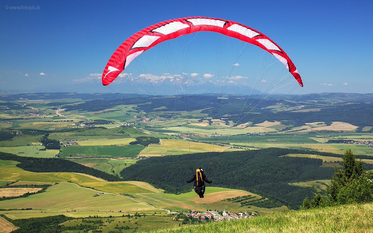 Mimoriadne priaznivé podmienky začiatkom júla prilákali na vrchol Sľubice desiatky paraglajdistov a jedného rogalistu. Tomuto adrenalínovému a dosť nákladnému športu sa venuje čoraz viac ľudí v rôznych vekových kategóriách. Kedysi som obdivoval dvoch či troch ako lietajú v okolí Spišského hradu, teraz ich bolo hore toľko že sa tam počas štartovania skoro nepomestili. Začať lietať nemôžu včasne ráno, keď je oveľa lepšie svetlo na fotenie, lebo musia čakať na stúpavé vzdušné prúdy, ktoré vznikajú až po prehriatí vzduchu spravidla okolo poludnia aby sa dostali do požadovanej výšky a neklesali dole.