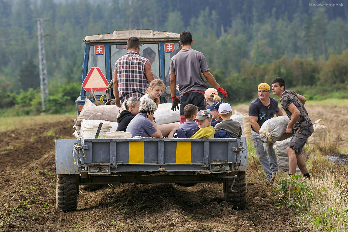 Už len posledných pár vriec zemiakov a zber sa úspešne skončil.