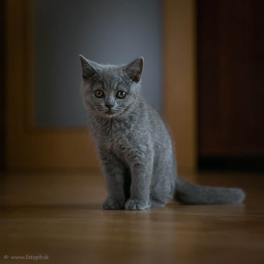 Trojmesačná britská krátkosrstá mačka.