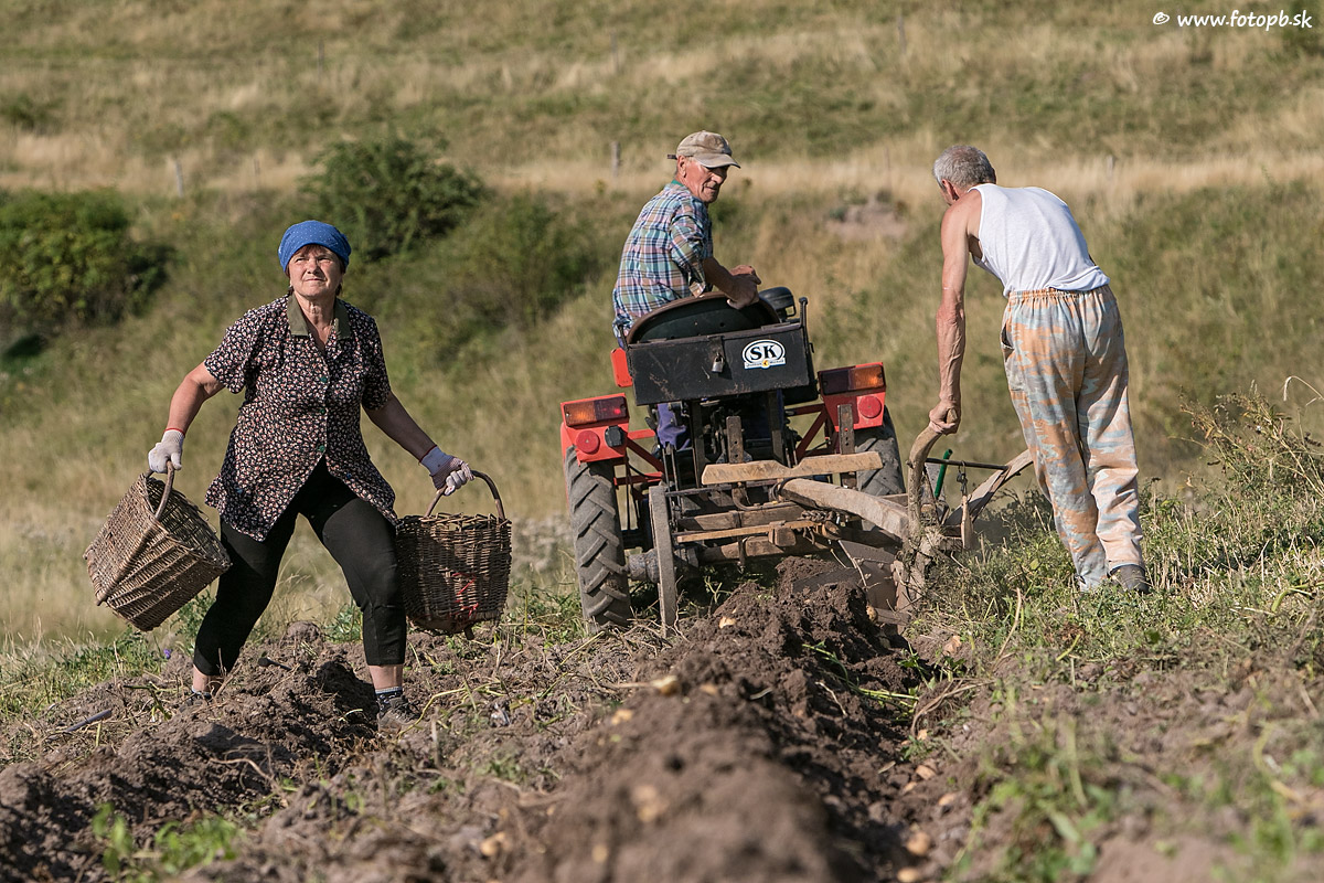 Vyorávanie zemiakov.