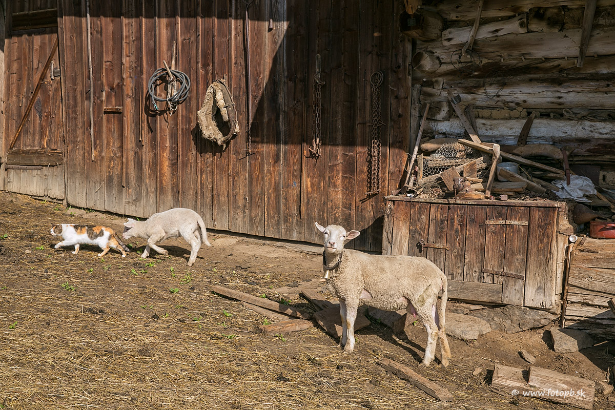 Malé jahňa neustále hlavou narážalo do mačky a provokovalo ju.