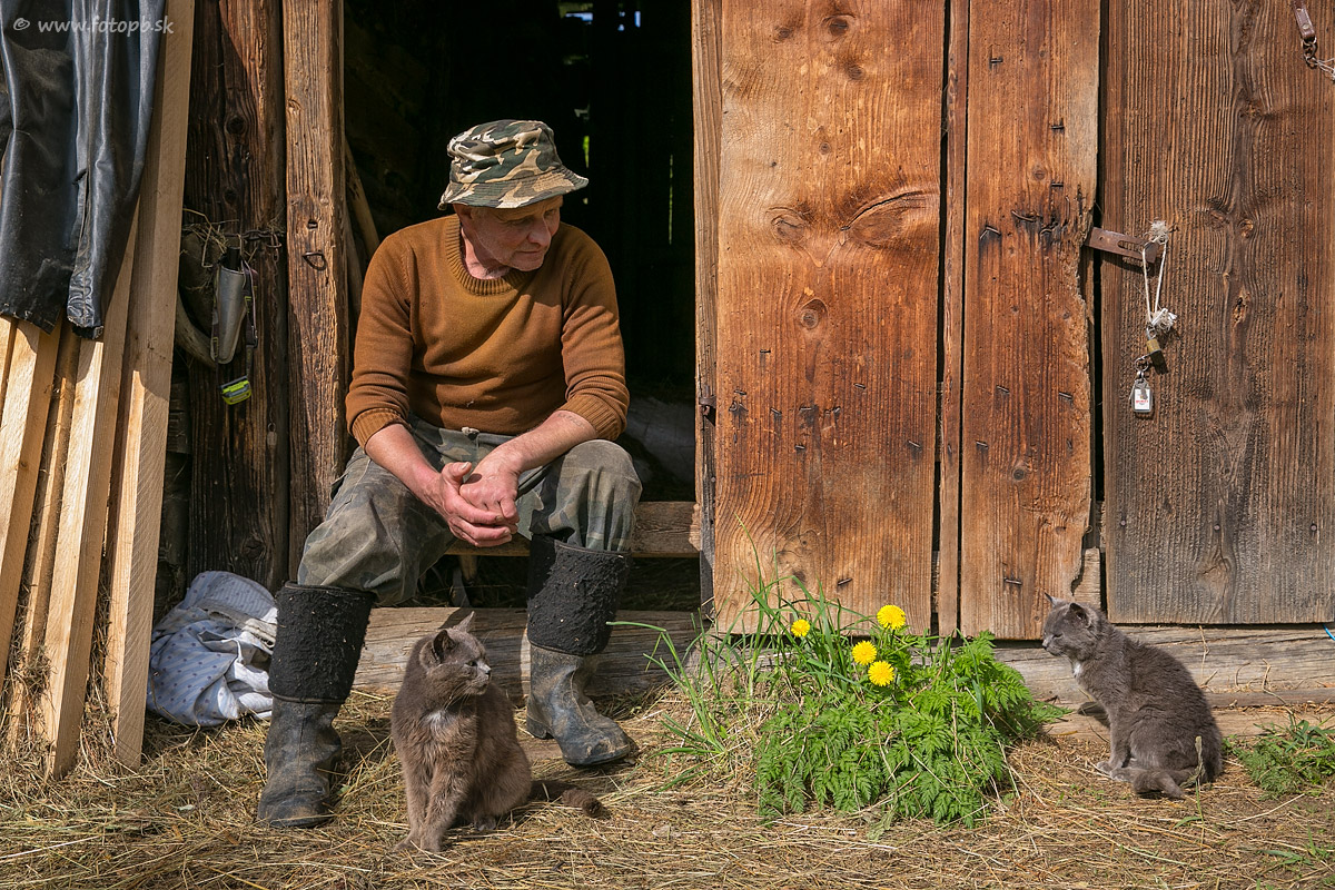 Miestny gazda aj s potomkami britského kocúra, ktorý sa pred rokmi zatúlal na lazy kde už ostal.