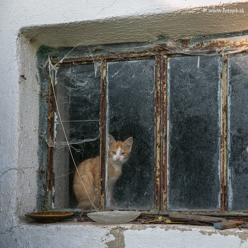 Za oknom je bezpečnejšie, ale neskôr mačička ja tak neodolala zvedavosti a vykukovala z dverí.