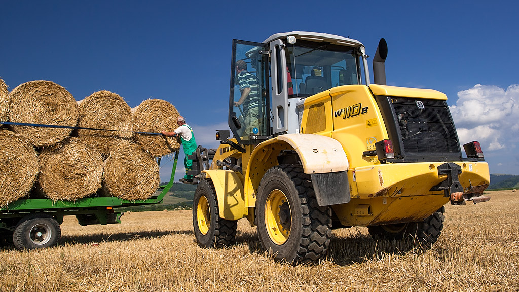 Upevňovanie balíkov slamy po naložení.