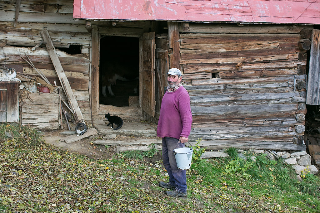 Práve sa chystal do maštale podojiť kravu. Skúšal som fotografovať aj vo vnútri, ale bolo tam príliš málo svetla a blesk som zo sebou nemal.