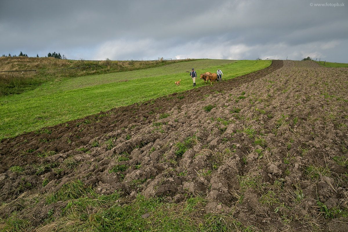 Jesenná orba s kravským záprahom.