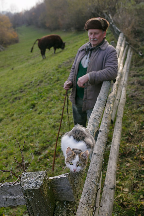 V popredí klasická všadeprítomná "zdychavská mačka", v pozadí pasúci sa býček, ktorý je v čase pridania fotografie na web už v mrazničke ako kvalitné mäso.