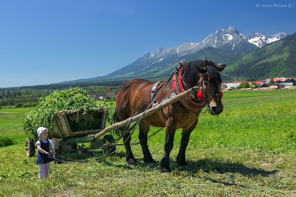 Deti z Lendaku majú príkladný vzťah k zvieratám. Aj táto malá Lendačanka sama žiada rodičov aby ju vzali na pole, kde môže sledovať koníka pri práci a pomáhať im ho strážiť. Keďže bolo dosť teplo a ostré slnko, pod vozom v chládku odpočíva psík.