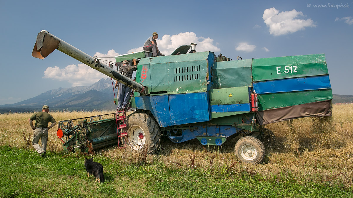 Prvé metre obilia sú zožaté. Ešte prebieha vizuálna kontrola kvality práce žatevnej techniky za účasti štvornohého asistenta.