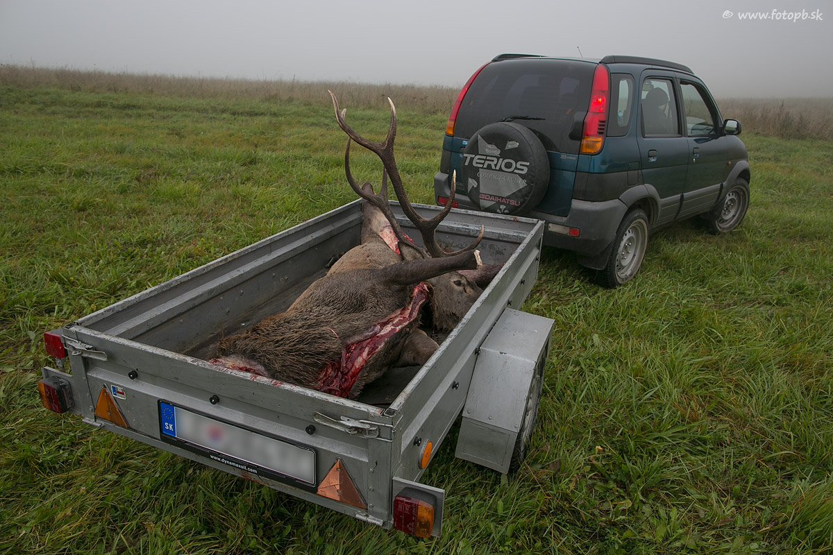 A už sa jeleň vezie z lúky kde zahynul pri súboji s iným jeleňom .... Bol to pre mňa zaujímavý zážitok a aspoň som aj niečo nafotil, lebo Spišský hrad bol celé dopoludnie v hmle, bez šance urobiť dobrú krajinársku fotku.