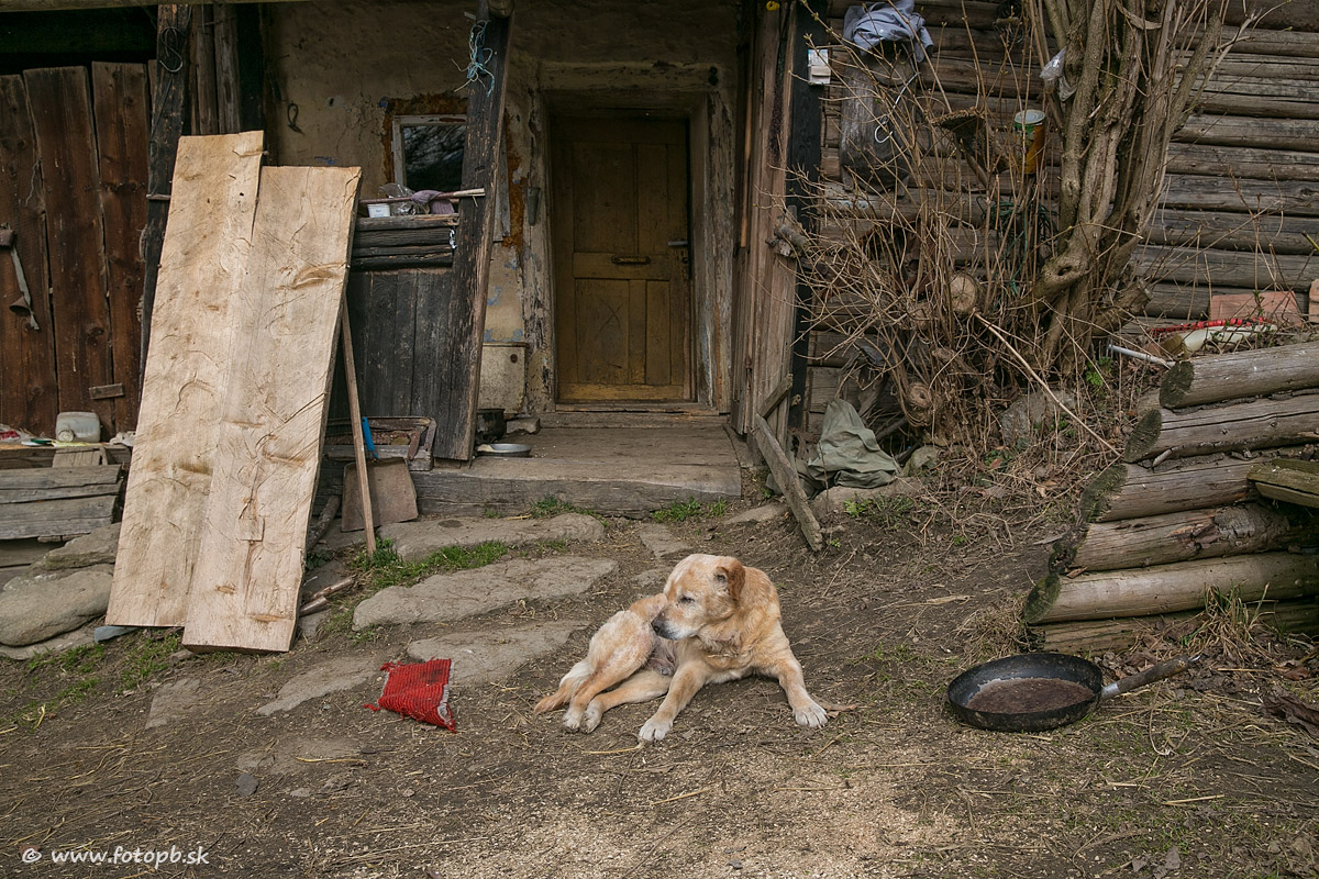 Tento psík je už veľmi starý, nepočuje, zle vidí a gazda mu už veľa času nedáva , ale ešte si občas zašteká.