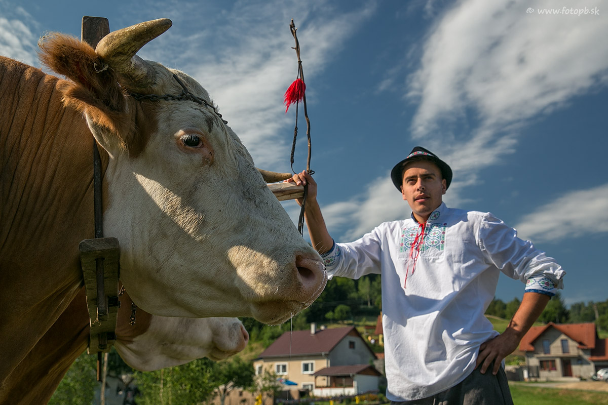 Mladý gazda s párom volov, ktoré sa dosť na tomto podujatí narobili, lebo viezli časť svadobného sprievodu a potom ešte predvádzali tradičnú orbu.