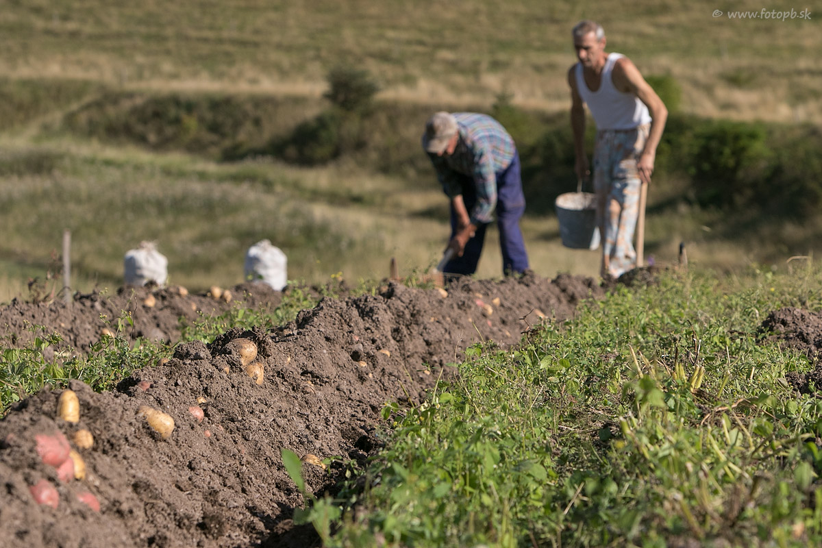Ručné vyberanie vyoraných zemiakov je pracné, ale šetrné voči úrode.